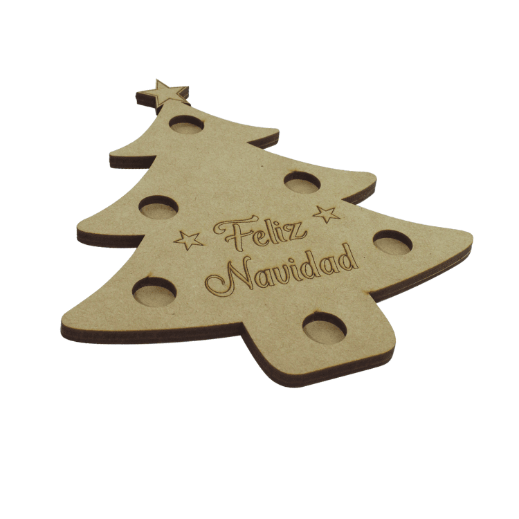 Porta vela de madera enchapada MDF, está diseñado para la noche de velas en navidad. Cuenta con espacios para ubicar las velas, su diseño permite comodidad en transporte.